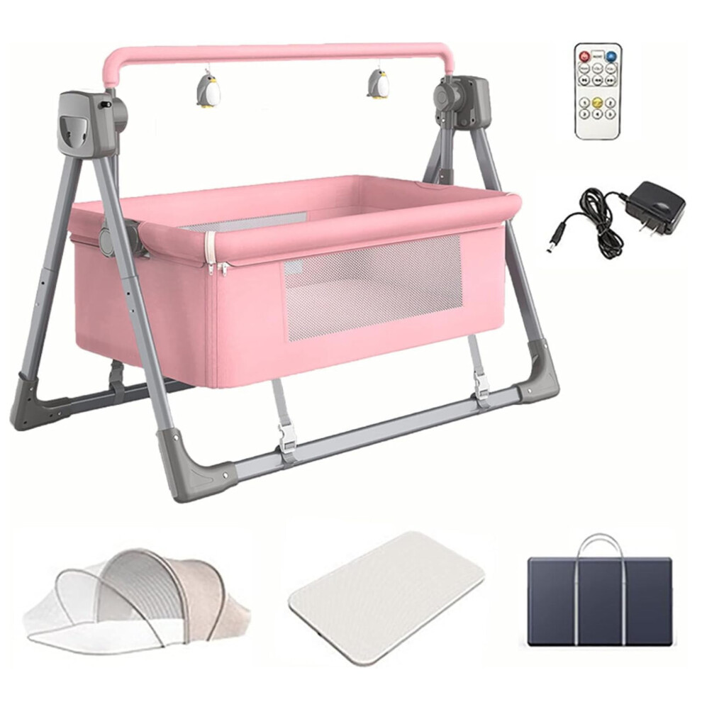 gucdaqc Electric Baby Crib 0-25kg Automatic Baby Bouncer Hub Swing With Bluetooth Newborns Rocker With 5 Swing Settings Electric Infant Cradle Foldab