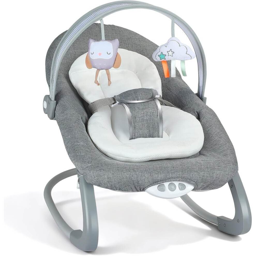 Baby Bouncer from Birth, Electric Baby Swing Chair with Soothing Vibrations and Music, Adjustable Baby Rocker with 3-Point Harness, Removable Toy Bar