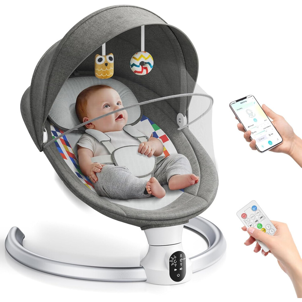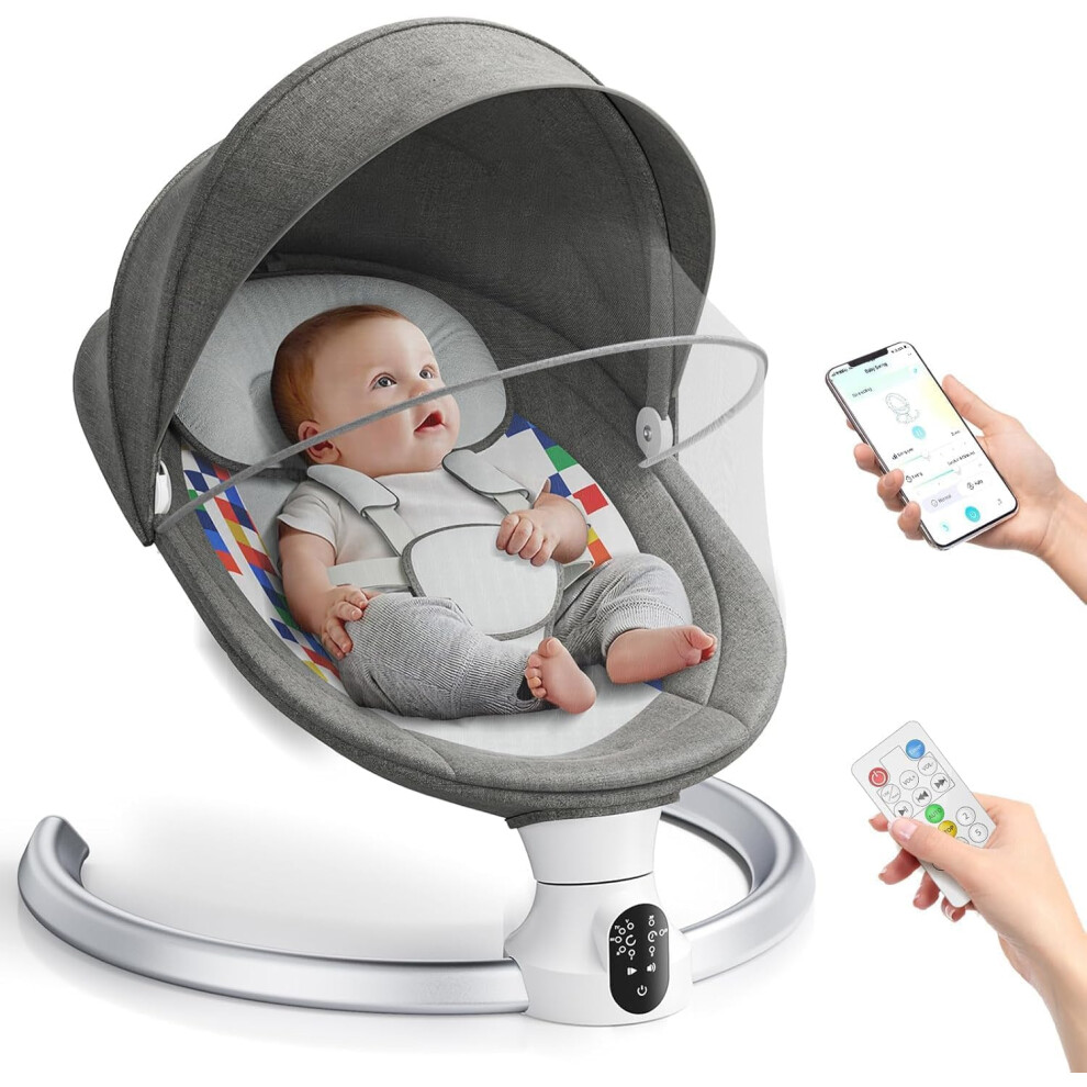 Ixdregan Baby Swing Chair,Electric Baby Bouncer with 5 Swing Amplitudes,Electric Baby Rocker,Baby Bouncer with Mobile App Control and Remote Control