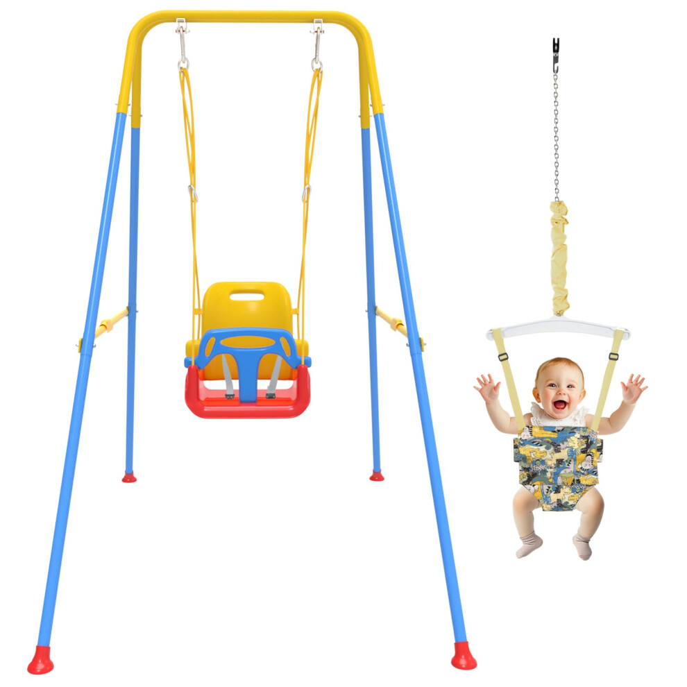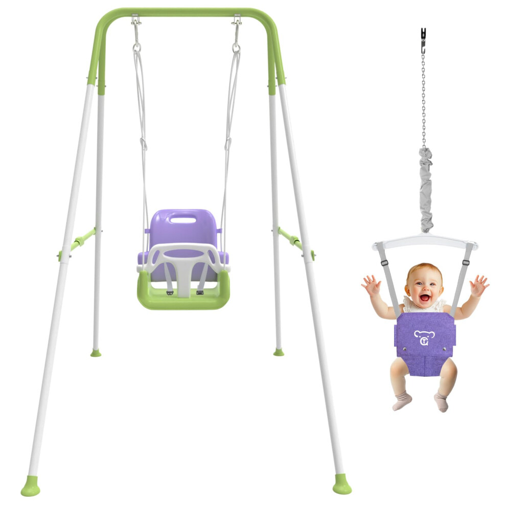 2 in 1 Toddler Swing & Baby Jumper Foldable Baby Bouncer with Soft Cushion Foldable Indoor & Outdoor Use Easy to Install & Store Swing Sets for Bac