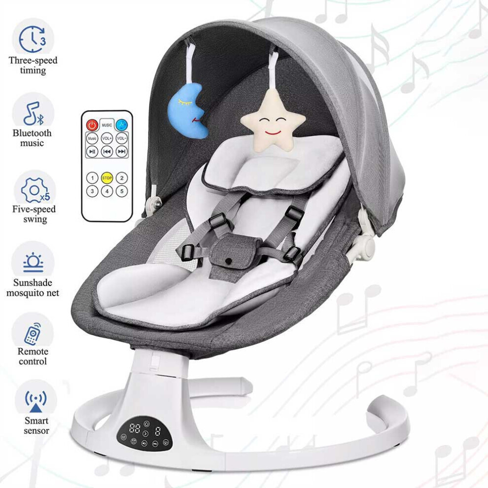 Bluetooth Electric Baby Rocker Swing Infant Bouncer Chair Music Gray