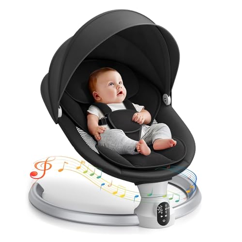 Electric Baby Bouncer Chair, Ixdregan App & Remote Control Electric Baby Swing with Bluetooth, 5 Swing Speeds and 3 Timer, 10 Preset Lullabies, Soft Padded Newborn Toddler Bouncer (App Black)