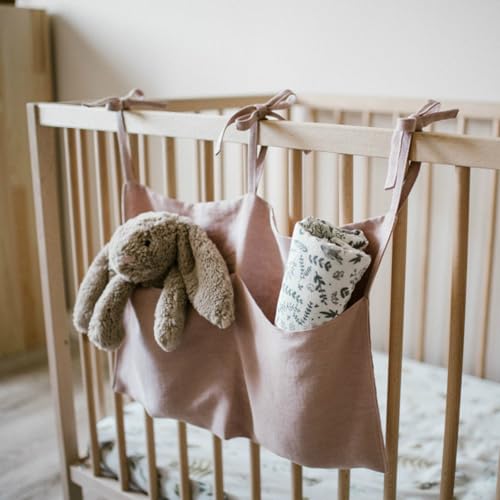 Storage Boxes Baby Bedside Nursery Storage Bag Organizer Playpen Accessories Hanging Canvas Pocket Book Organizer Caddy Pouch Attachment For Baby Crib And Toys (Beige, One Size)