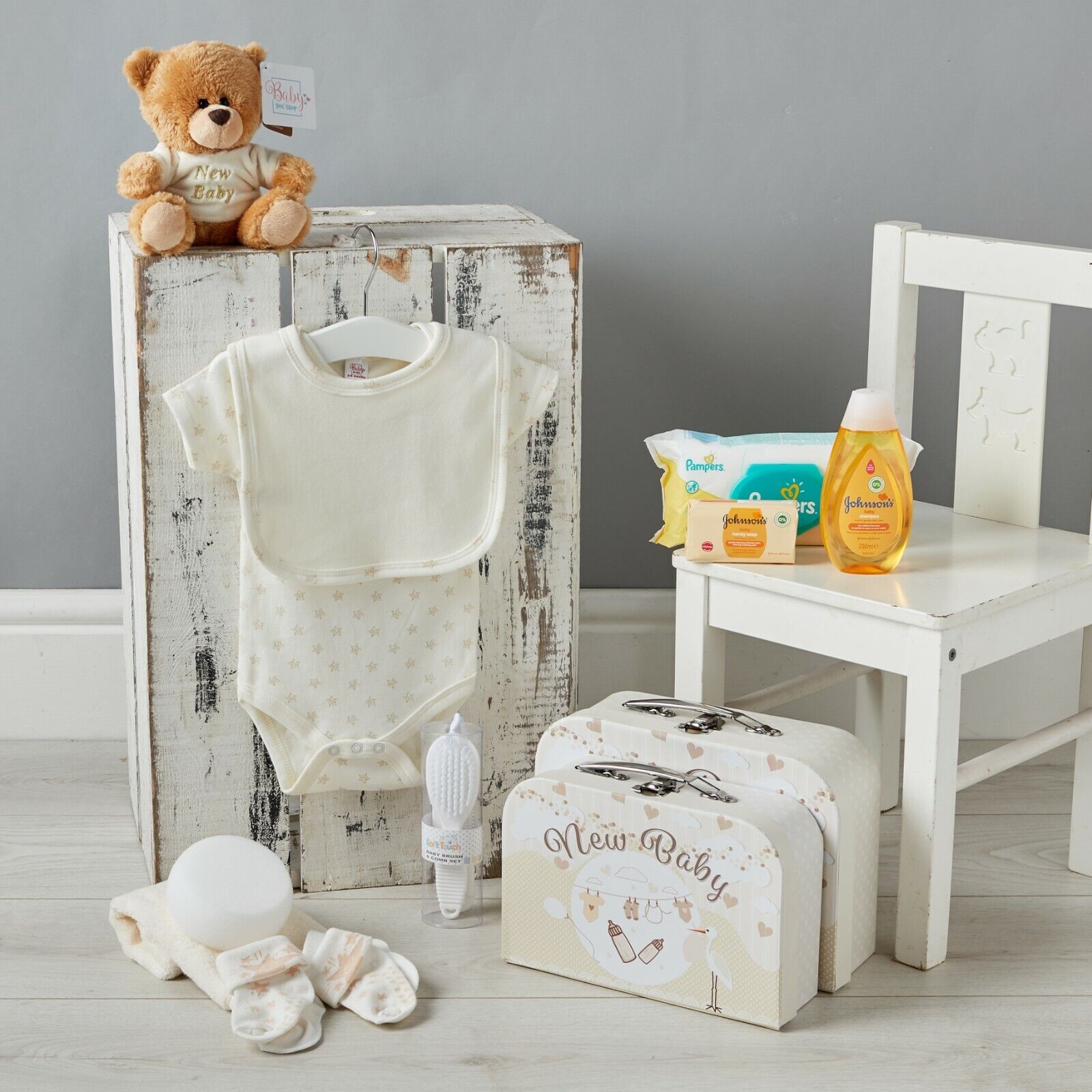 Unisex Baby Gift Set – 2 Cream Baby Keepsake Boxes Filled with Baby Gifts