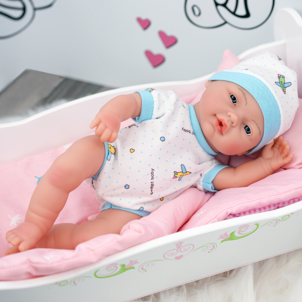 BiBi Doll Lifelike Soft Sleeping Baby Doll Boy Toy BiBi Doll Blue Design & Sounds 18"