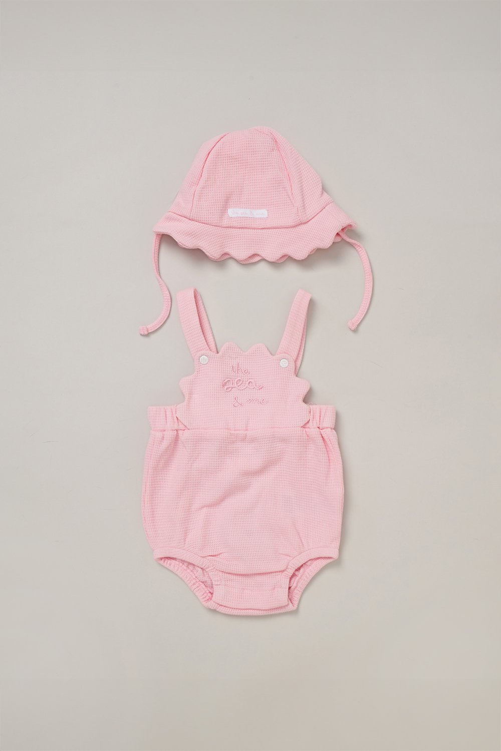 Rock A Bye Baby Waffle Romper and Sun Hat Outfit Set - Blush - Size 0-3M