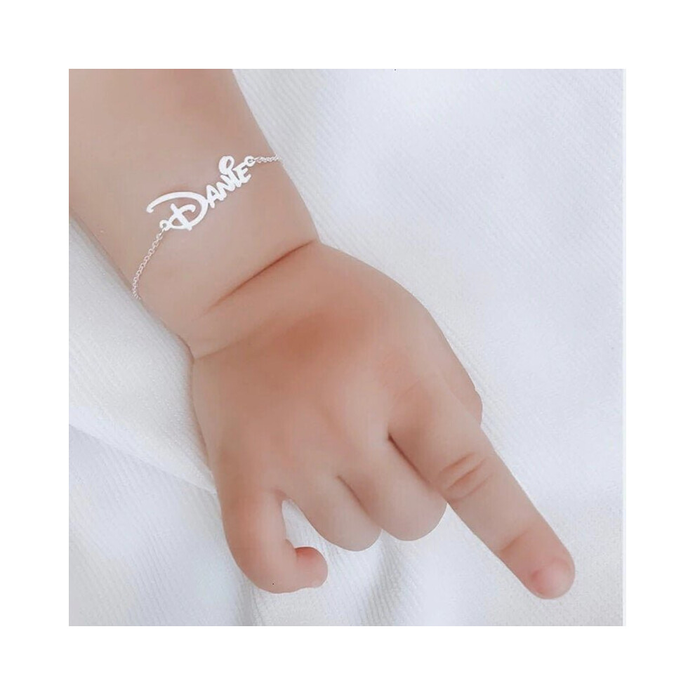(Gold-color, 17.5cm) Personalised Baby Name Bracelets Stainless Steel Women's Letter Bracelet Anklet Nameplate Jewelry Child ID