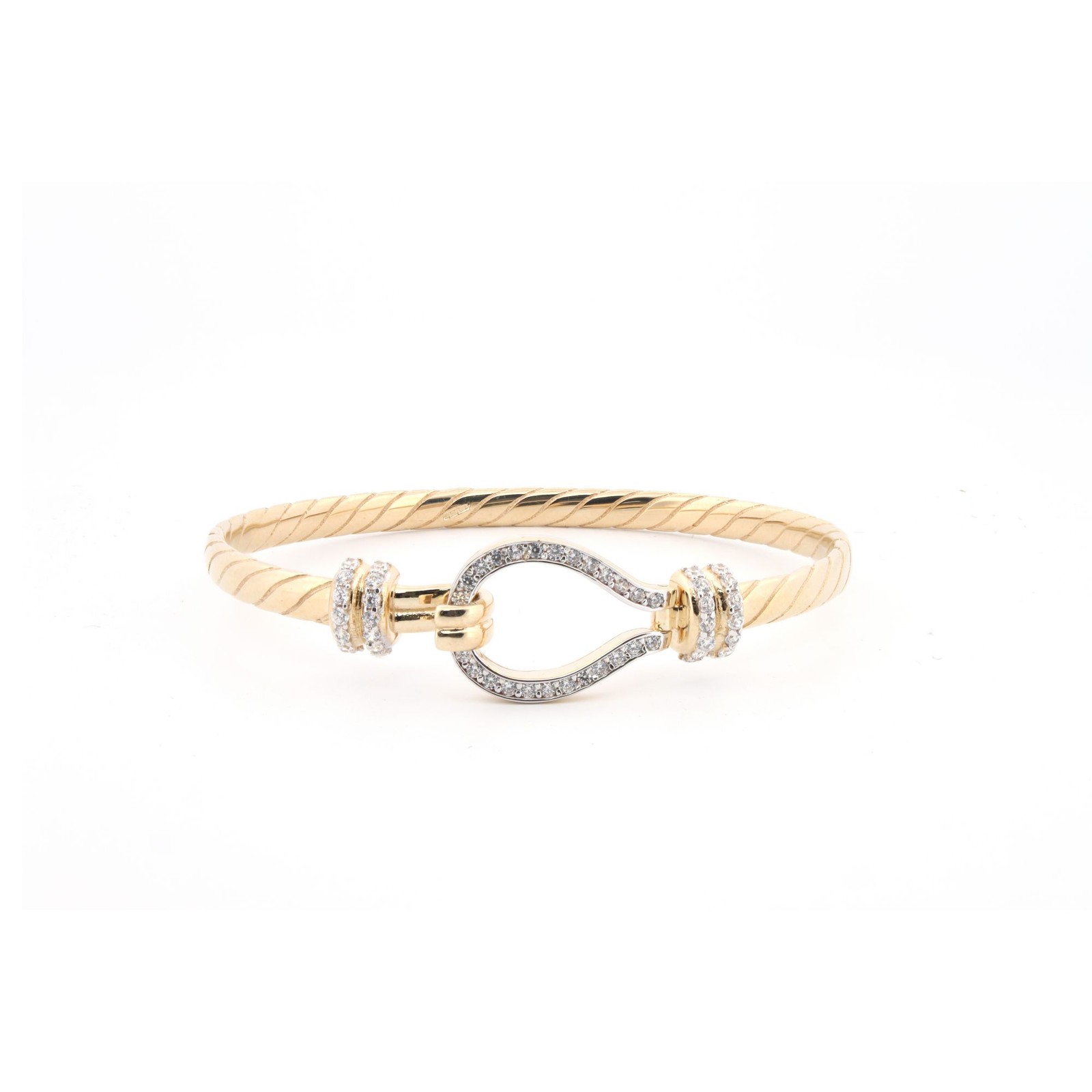 9ct Yellow and White Gold Jewelco London CZ Collared Torque Baby Bangle Bracelet