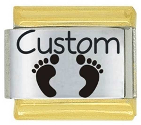 Custom Gold Trim Footprints Baby Feet - Daisy Charm For Italian Modular bracelet
