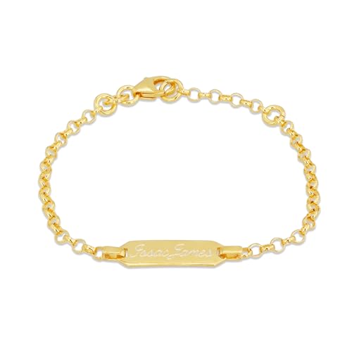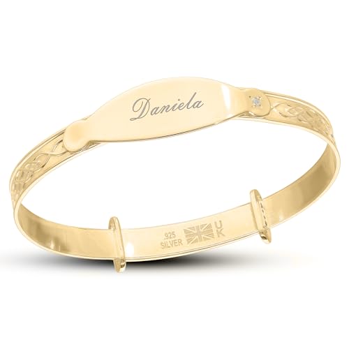 DV DOLCE VALENTINA Children's Personalised Silver 925 stamped, 18ct Yellow Gold Plated, Baby bangle, Unisex Bracelet for girl, white cubic zirconia set (Gift message 1)