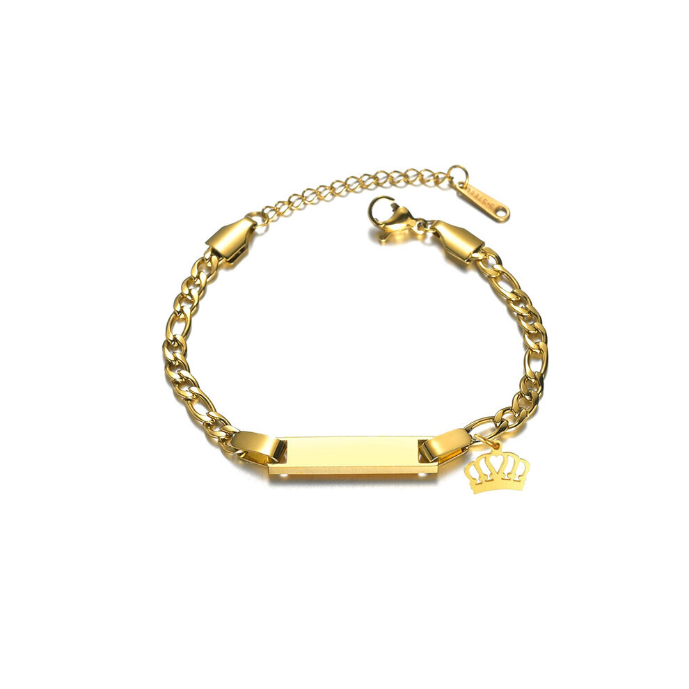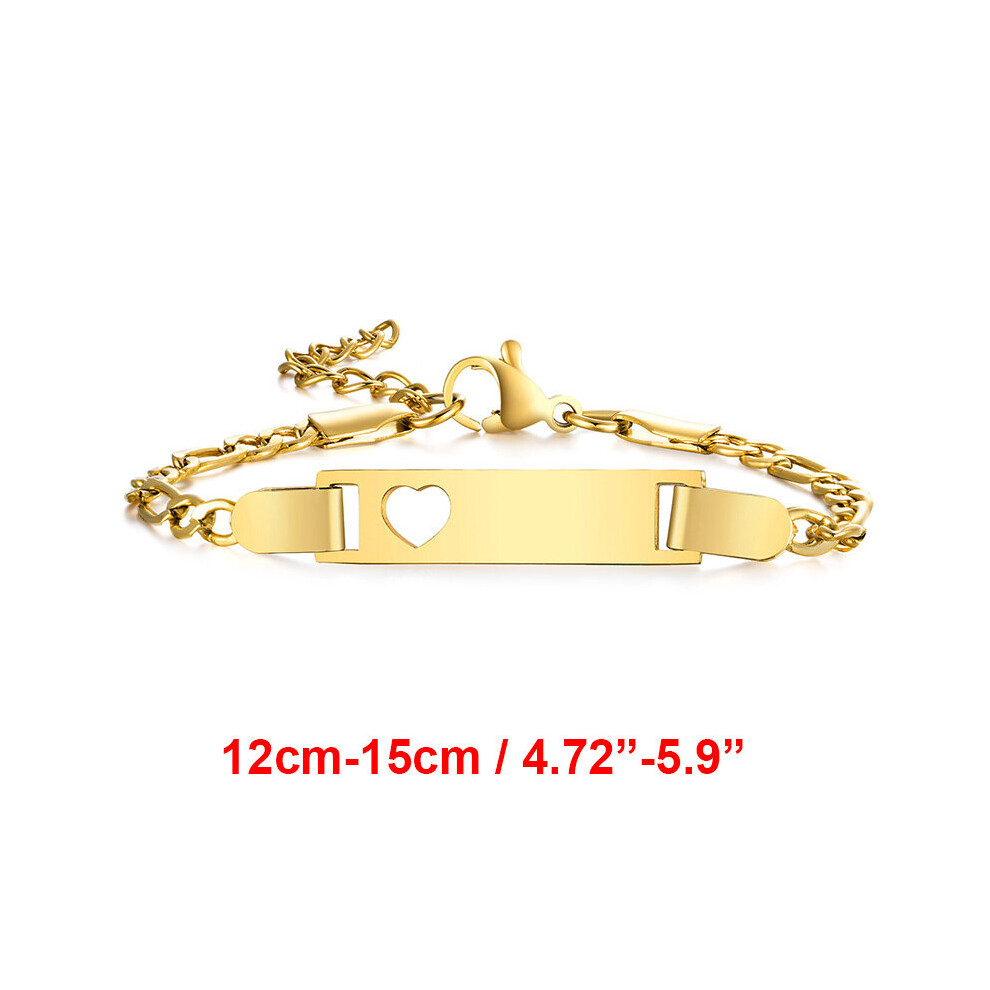 (Light Yellow Gold Color, 16.5cm) Nextvance Kids Crown Personalized Stainless Steel Bracelet Engrave Customzied Heart Star Chain Bracelets Baby Child