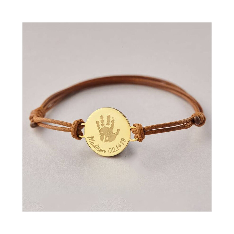 (style 1 Gold color-rose gold Pink-brown rope 17cm) Bracelets Personalized Adjustable Rope Bracelet Women Engraved Baby Footprint Handprint Stainless