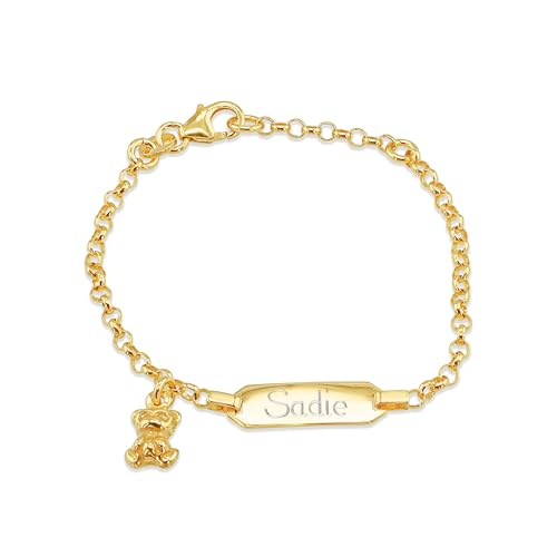 Hurley Burley London Baby's Personalised Gold Plated Christening Bracelet with Teddy Bear Charm 14cm