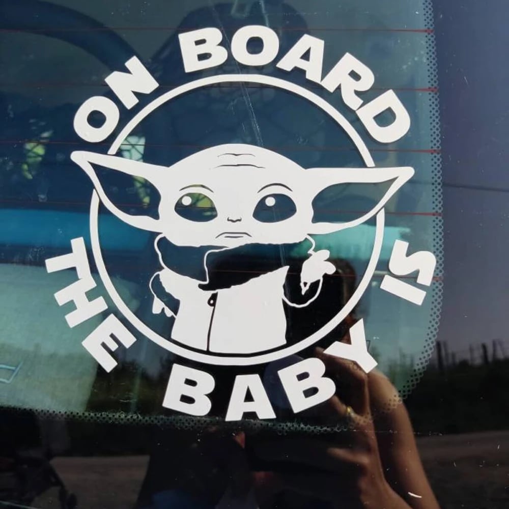 AGL Baby on Board Sticker (5.5)”- Cute Yoda Safety Caution White Color Decal Sign for Vans/Walls/Laptop/Car/Truck/Jeep/Window/Bumper/Helmet/Glass and More