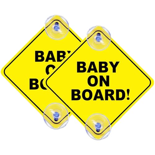 2Pcs Baby on Board Sign for Car, Child on Board Warning Car Sign Stickers with Double Suction Cups, Reusable Baby in Car Sticker for Car Window Bumper Stickers