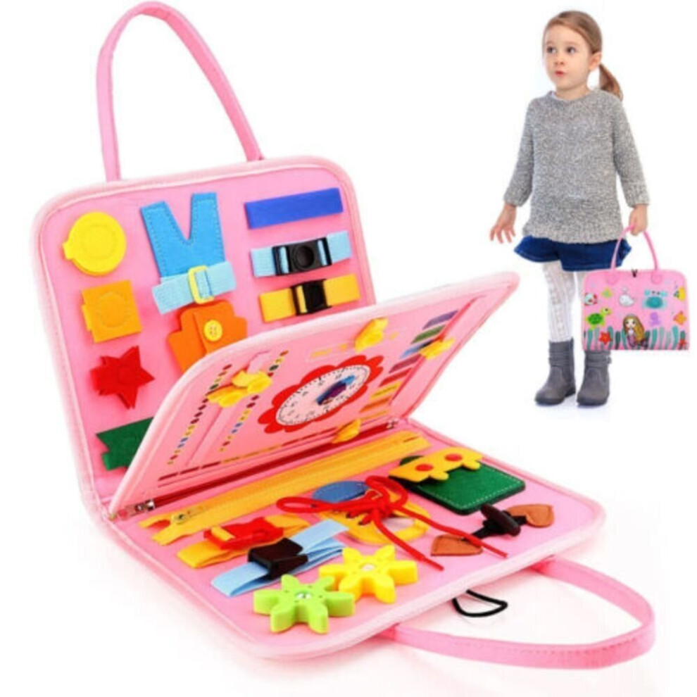 Otcmuky Baby Busy Board Montessori Sensory Toys Toddlers Basic Skills Learn Activity Board Educational Felt Toys & Playboards Gifts for 1 2 3 4 5 Years Old Boys Girls Child Pink