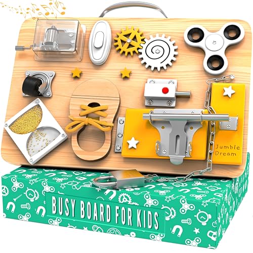 Jumble Dream Montessori Busy Board for Toddlers - Wooden Sensory Activity Toy - Educational & Fidget Play with Locks, Spinners & More - Travel Toy for Autism & ADHD - Baby Busy Board for Ages 1-4
