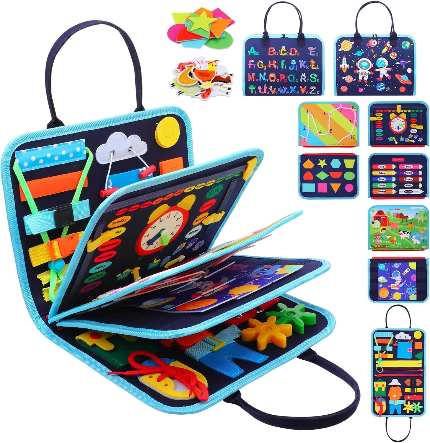 Felly Baby Travel Busy Board for Toddler 1+ Years, 8 in 1 Montessori Activity C