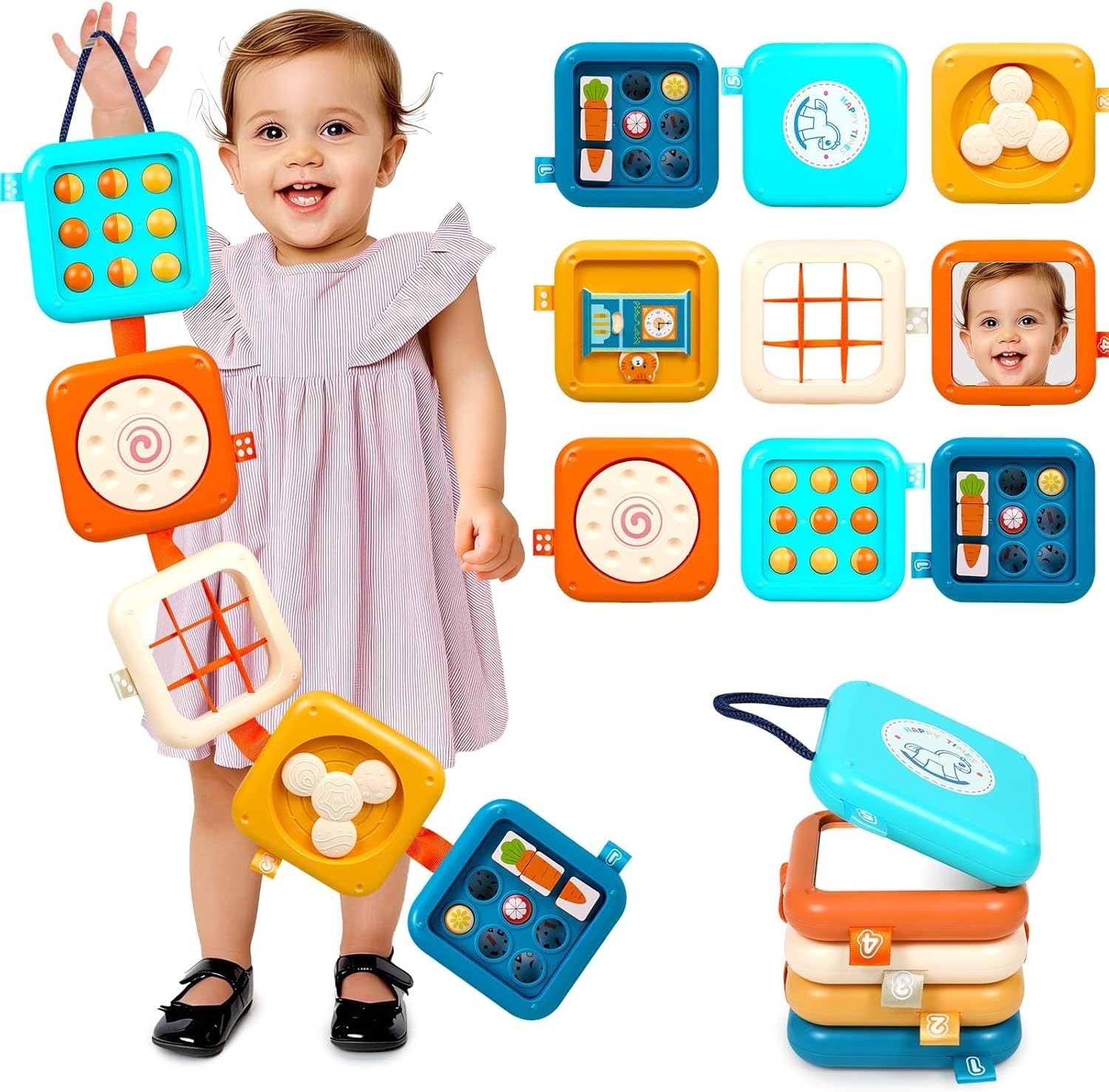 Toddler Travel Toys, Baby Busy Board, Foldable Activity Cube for 1 Year Old, Mo