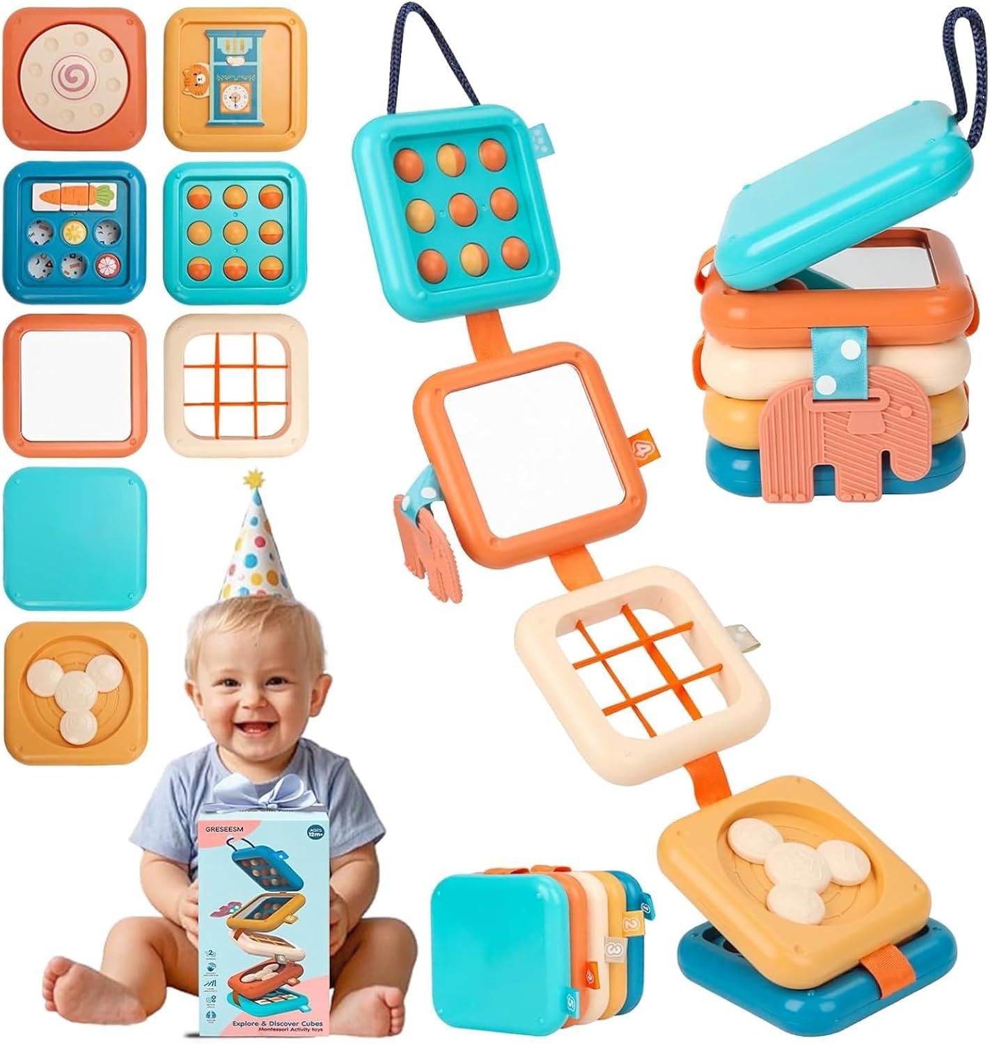 Montessori Toys for 1-3 Year Old Baby Toddler, Baby Sensory Busy Board Cube,Infant Travel Toys, Educational Learning Activities, Baby Toys 12-18 Months Birthday Gift for Boys Girls
