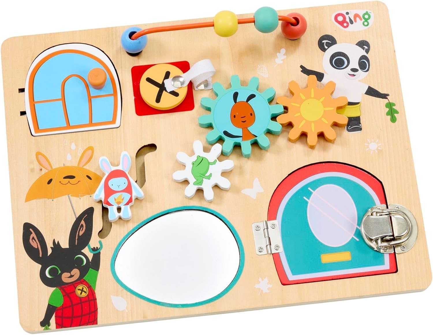 Rainbow Designs Bing Wooden Busy Board - Baby Busy Board with Knobs, Clasps & S