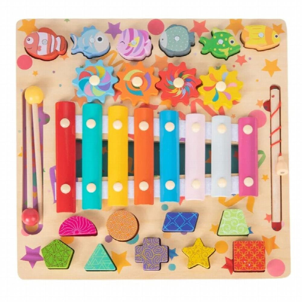 Baby Busy Board With Led Light And Wooden Fishing Game