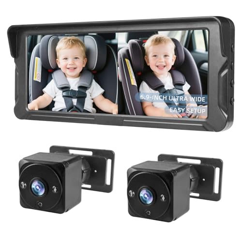 2-Kids Baby Car Camera for Seat: 6.9 Inch Ultrawide Display with Two Cameras Rear Facing - USB Powered Backseat Camera HD 1080P Easy to Install by