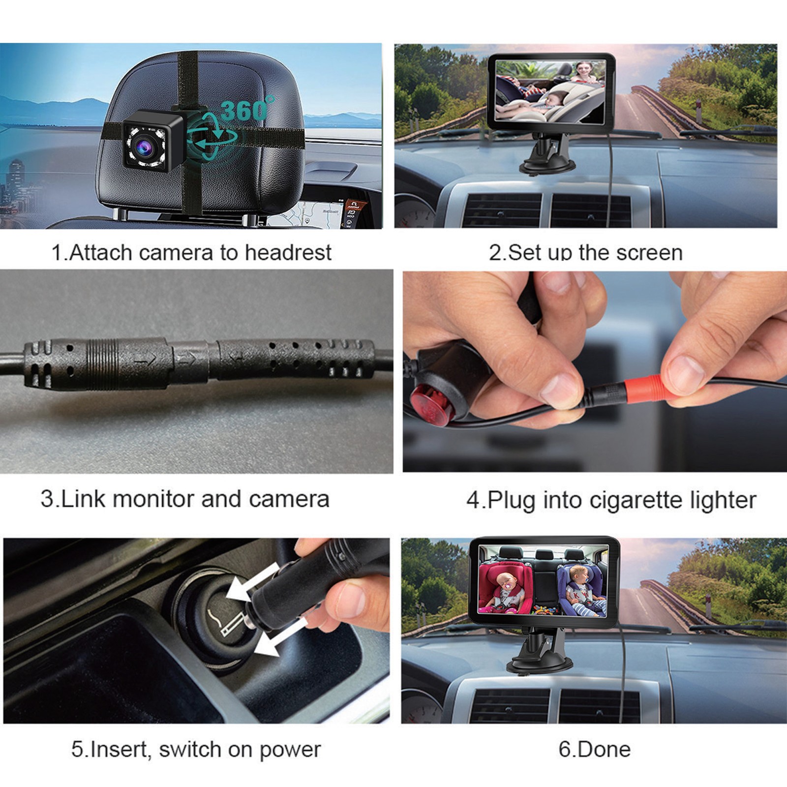 Baby Car Camera Baby Monitor CarSeat, 360° Full Rotation Backseat Monitor S8R6