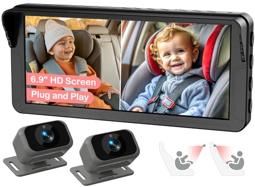 Tomoia 2-Kids Baby Car Camera for Seat – 6.9” Split Screen Ultrawide HD Display with 2 Cameras, IR Night Vision, Easy Installation, Dual Car Camera for Infant & Toddler