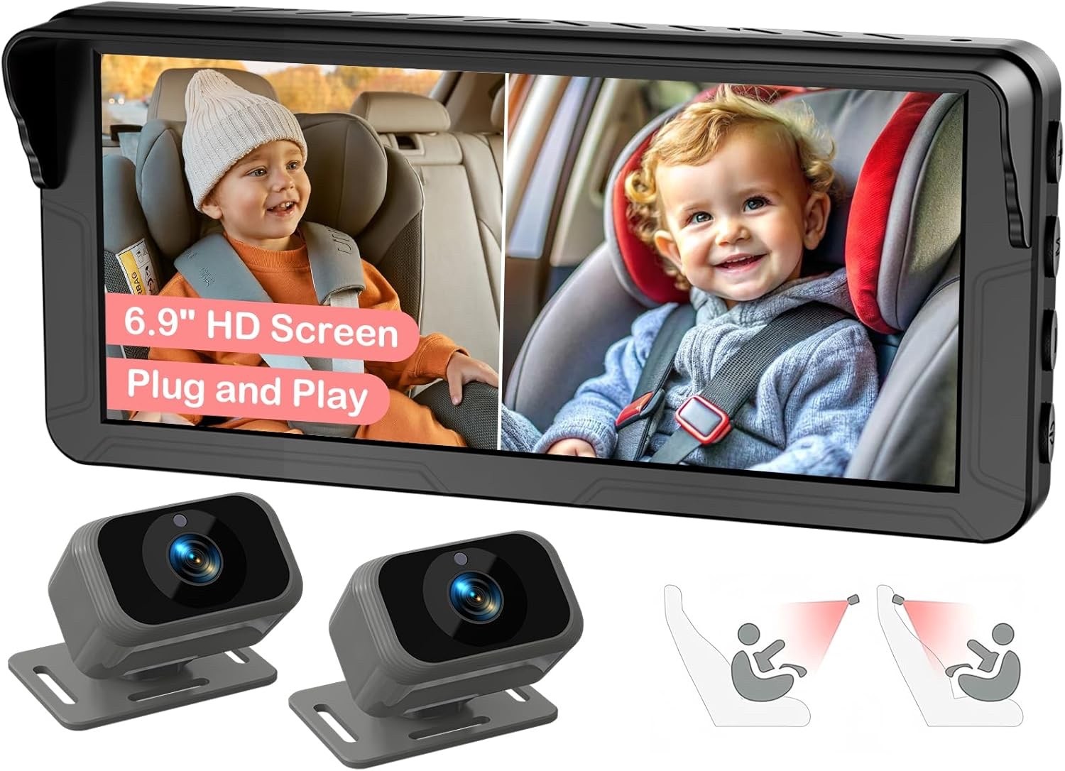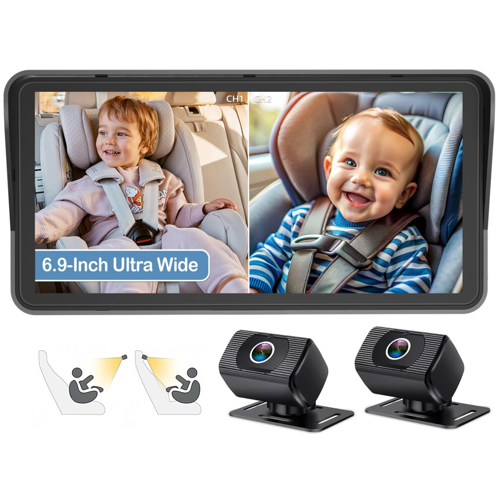 2-Kids Baby Car Camera for Seat – 6.9” Split Screen Ultrawide HD Display