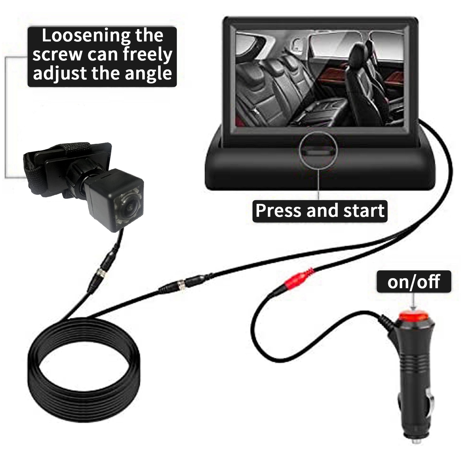 Car Rear View Camera With Monitor 8led Infrared Night Vision Baby Car Camera Monitor Waterproof 4.3 Inch Folding Display Screen
