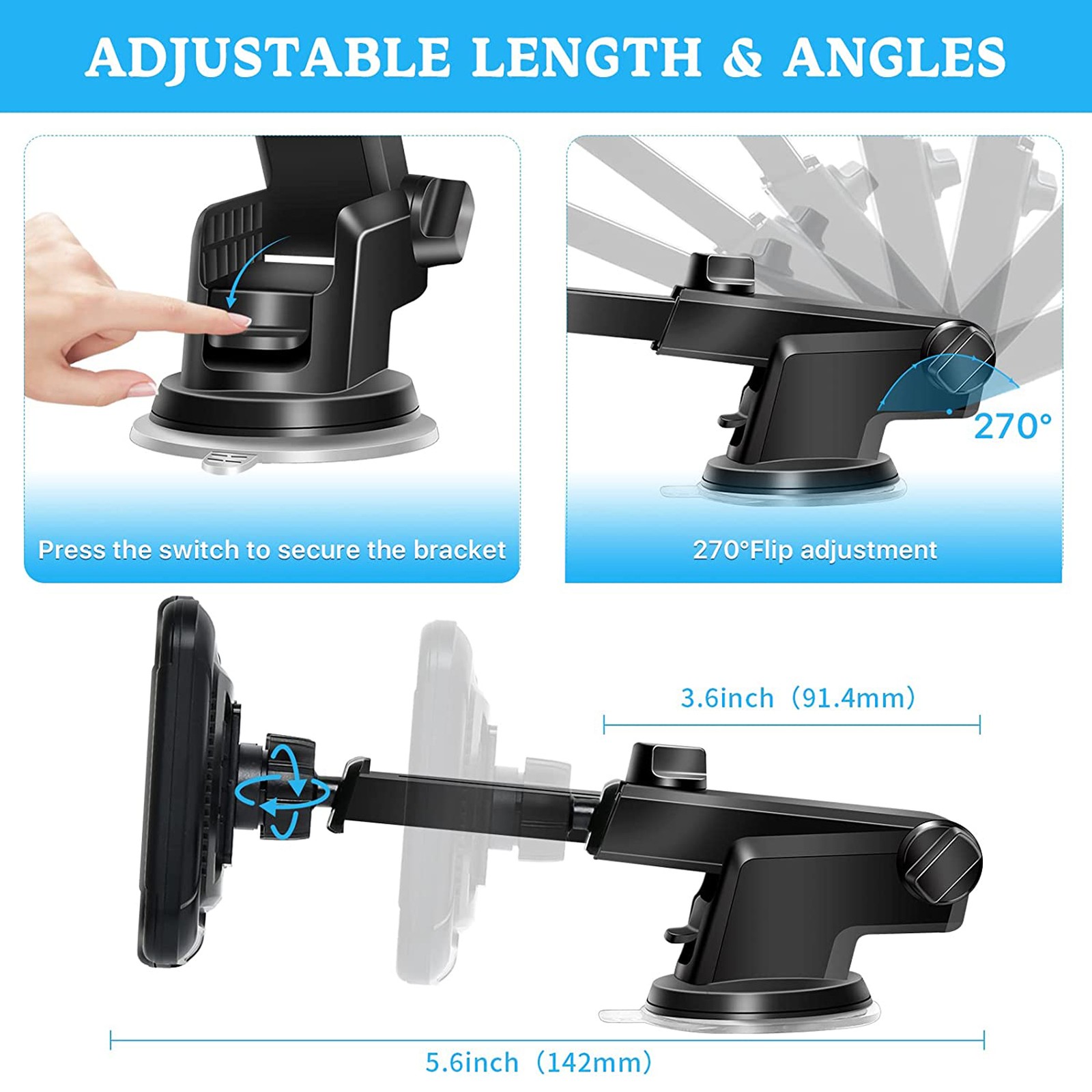 Baby Car Camera With Suction Cup Mount 4.3 Inch Display Anti Shake 360° Rot Fit
