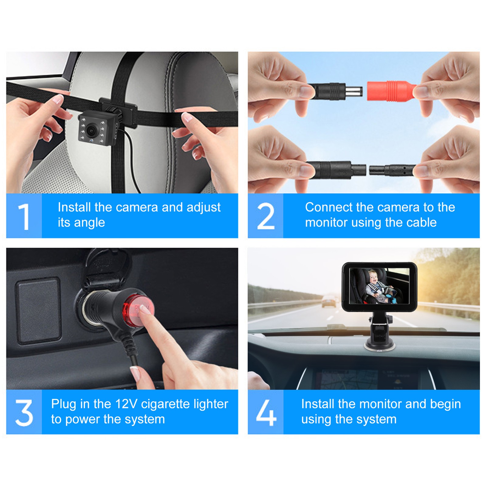Baby Car Camera 4.3 Baby Monitor With Night Vision 150° Wide Viewing Angle ;