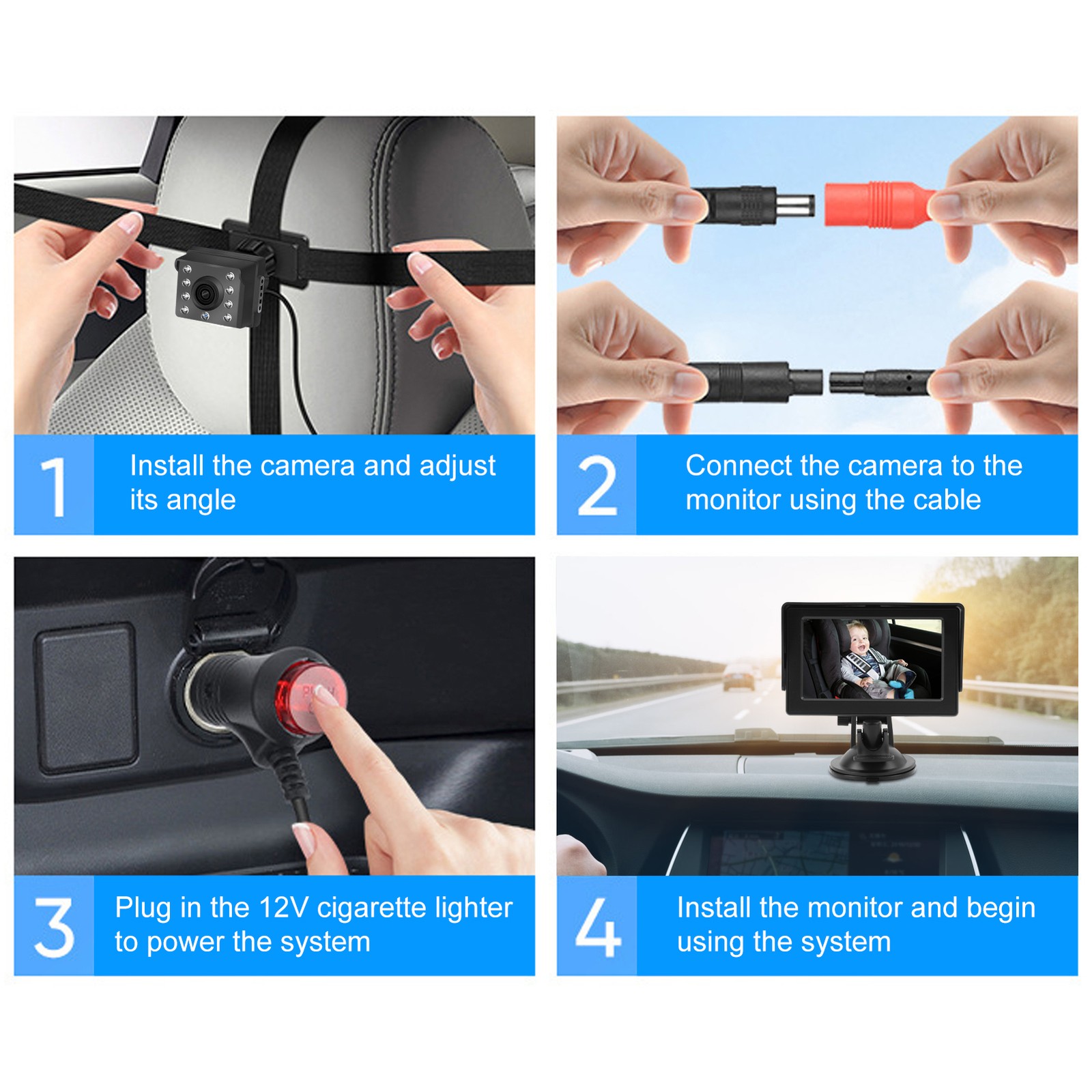 1080P Baby Car Camera 4.3 Baby Monitor With IR Night Vision And 150° Wide Fit