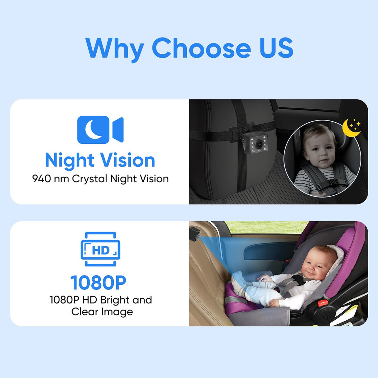 1080P Baby Car Camera Night Vision Function Rear Facing Seat Mirror Baby Monitor