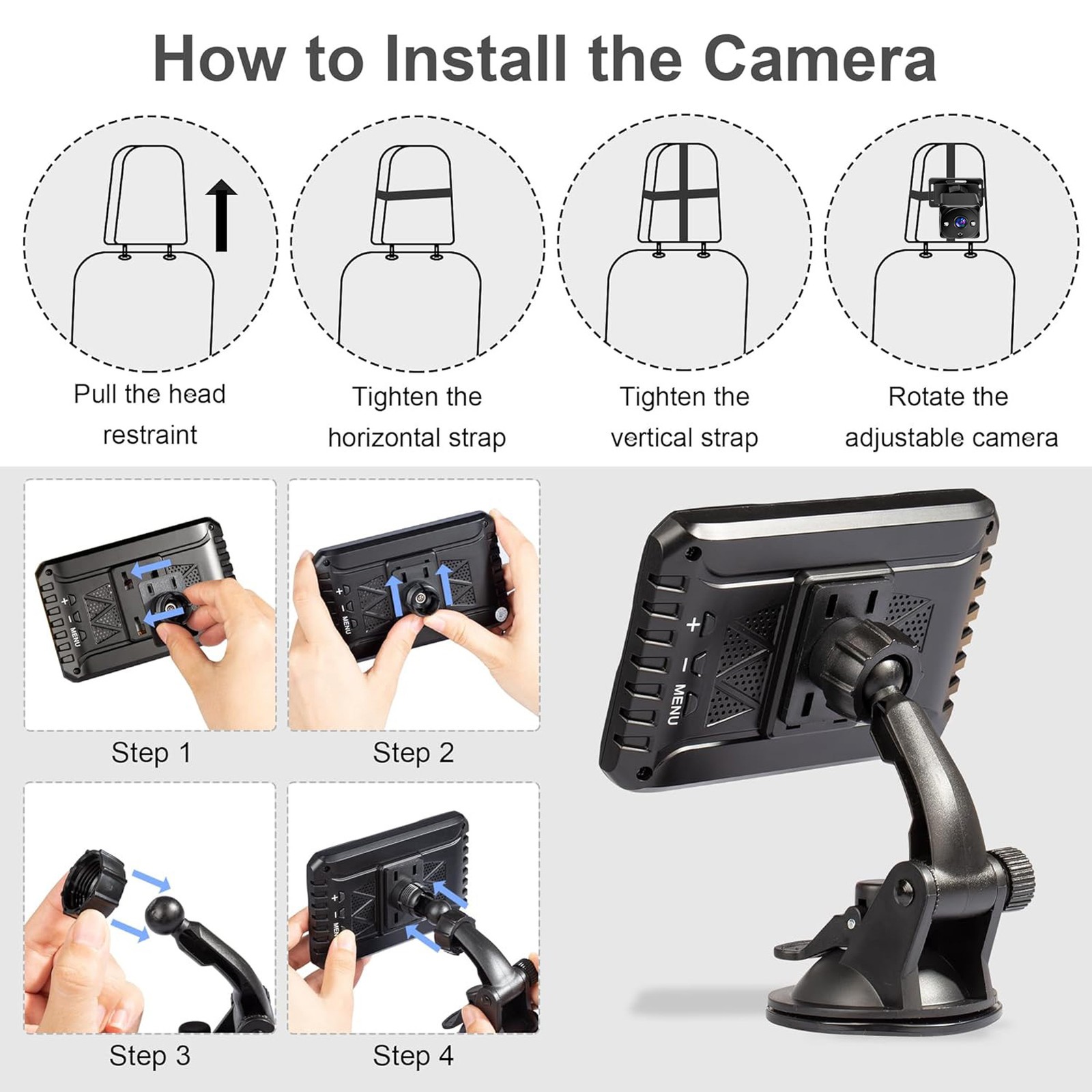 MYPIN 4.3'' Baby Car Camera & Monitor for Back Seat, HD 1080P with Night Vision Function, 150° Wide View with Reusable Sucker Bracket, Real Time Infant Safety for Toddlers & New Parents