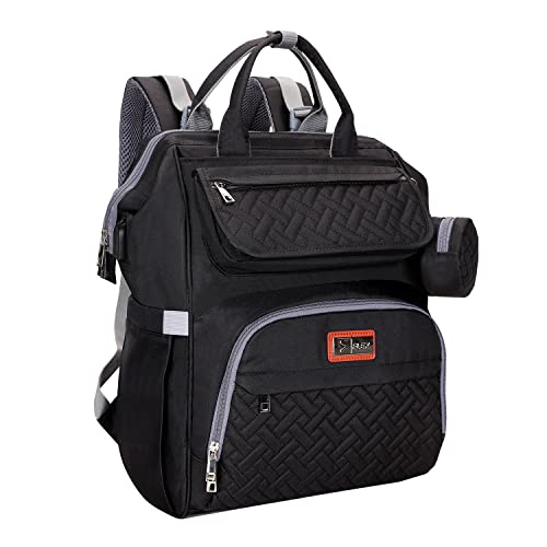 RUVALINO Baby Changing Bag Backpack, Neutral All-in-One Baby Bags for, Multifunction Large Travel Backpack with Portable Changing Pad, Stroller Straps, Pacifier Case and Insulated Pockets, Black