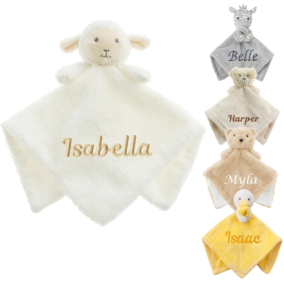 Baby Personalised Animal Comforter Blanket Soft Snuggly Animal Designs (Cream - Lamb)