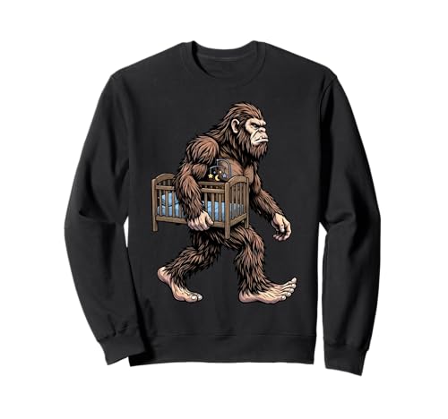 Bigfoot Carrying Baby Crib Funny Sasquatch Parenting Humor Sweatshirt