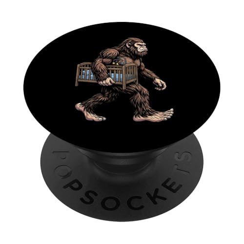 Bigfoot Carrying Baby Crib Funny Sasquatch Parenting Humor PopSockets Adhesive PopGrip