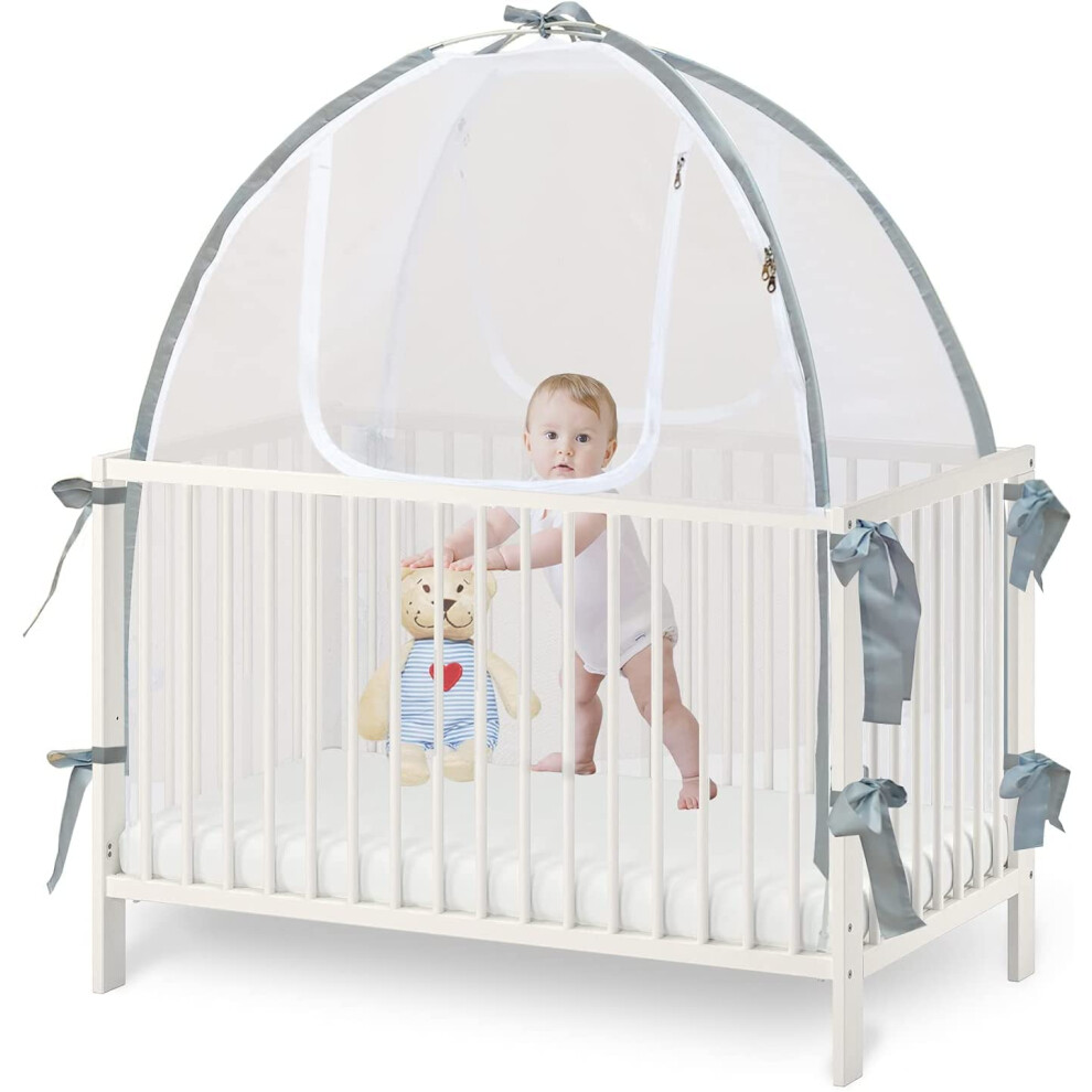 Baby Crib Tent Safety Net, Durable Strong Self-Locking Zippers, Protects from Climbing Out and, Insects, Mosquitoes, Installs with Rods (Crib 52.25" -
