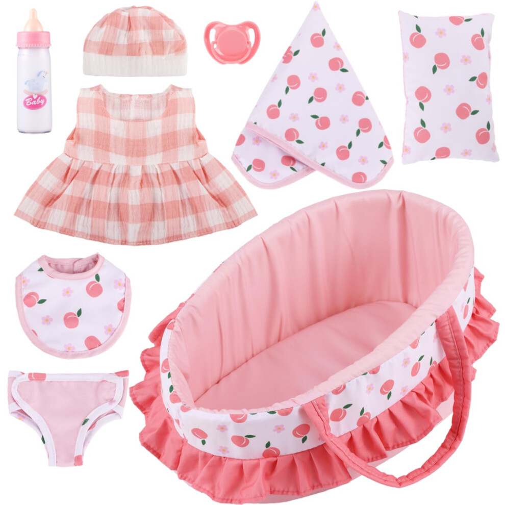 GAGAKU Baby Doll Accessories, 12 Inch Baby Doll Carrier Cot, 30cm Baby Doll Accessories Cot, Including Magic Baby Bottle, Bib, Pacifier, Clothes,