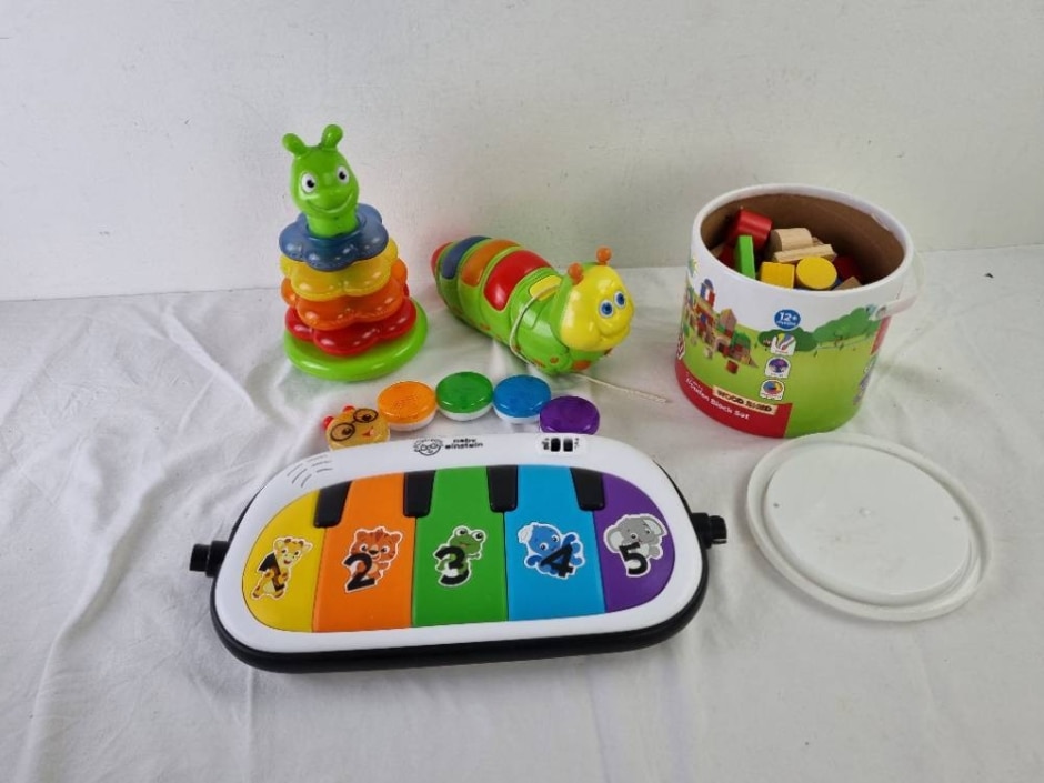 Baby Einstein Chad Valley 4pcs Toys Bundle Wooden Block Set Piano Toy Staking Ring Toy Caterpillar