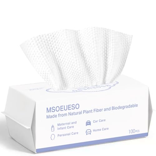 Disposable Face Towel, MSOEUESO 100% Cotton Facial Tissues, Wet Dry Face Cloths, Biodegradable Dry Wipes, Makeup Remover Wipes, Ultra Soft for Adults and Baby 100 count, 1 pack