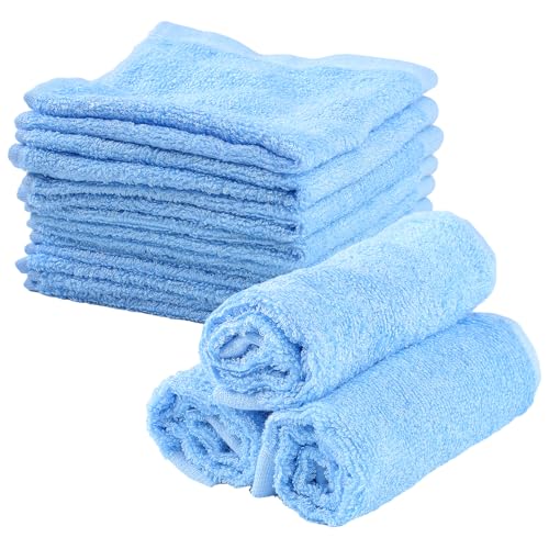 Lanjue 8 Pack Flannel Face Cloth, 10 x 10 inch Soft Bamboo Face Cloths Towels Reusable Flannels Facial Cleansing Cloths Baby Wash Cloth for Women Kids Adult Spa Sport Beauty Routine (Blue)
