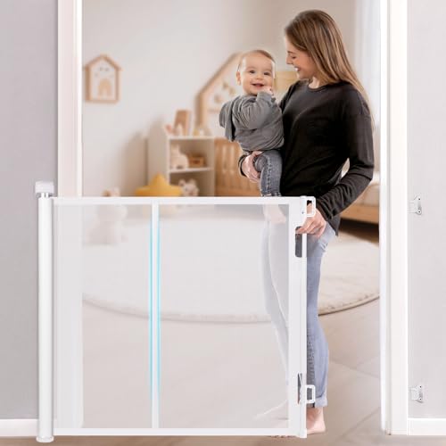derimkcoa Retractable Stair Gate for Baby,Mesh Baby Gate or Mesh Dog Gate,86cm Tall,Extends up to 180cm Wide,Child Safety Gate for Doorways, Stairs, Hallways, Indoor/Outdoor, White