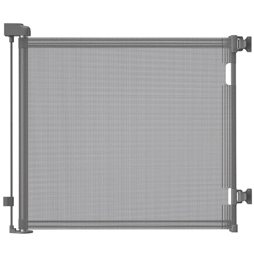 Lexixi ibao Retractable Baby Gate, Mesh Safety Kids or Pets Gate, 33” Tall, Extends to 55” Wide, Mesh Safety Dog Gate for Stairs, Indoor, Outdoor, Doorways, Hallways (Grey, 33"x55")