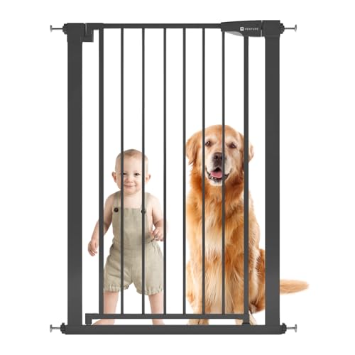 Venture Stair Gate - Q-Fix 110cm Extra Tall Baby Gate for Stairs & Doorways - 73-80cm Wide Indoor Dog Gate, Pressure Fit with Auto-Close & 90° Two-Way Open - Black