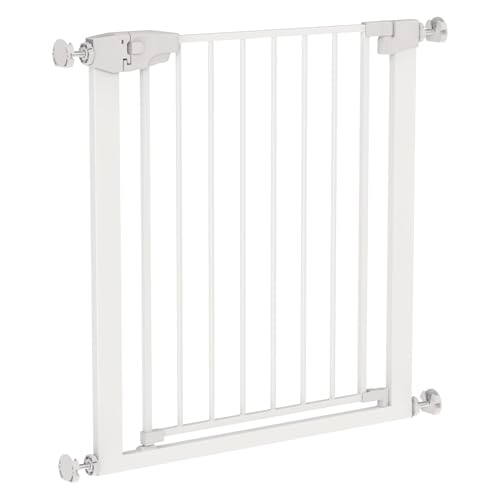 Baby Gate for Doors and Stairs, 10 cm Extension, Stair Gate Pressure Fit - No Screws, Child Stair Gate for Widths 75 to 85 cm, Dog Safety Gate One-Handed Opening to Both Sides, Metal, White/Grey