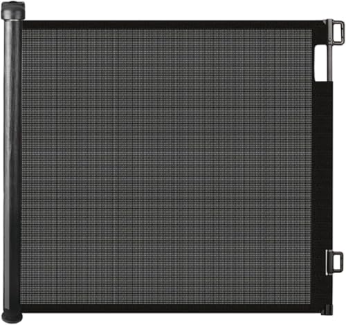 Derimkcoa Retractable Mesh Baby or Dog Gate - 86cm Tall, Extends up to 180cm Wide - Child Safety for Doorways, Stairs, Hallways, Indoor/Outdoor - Black